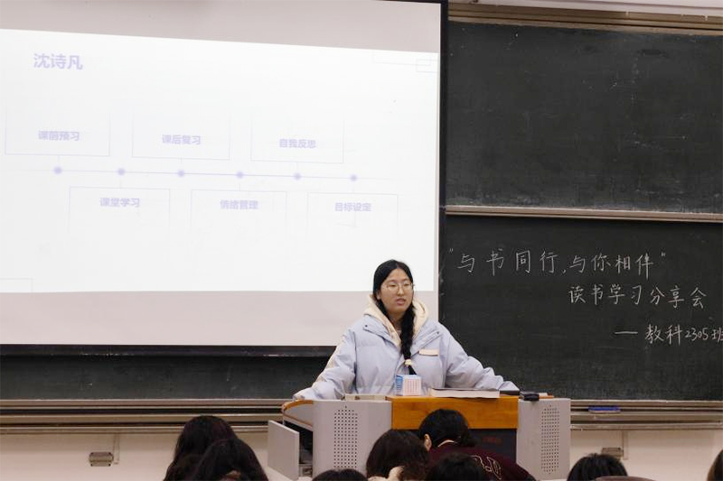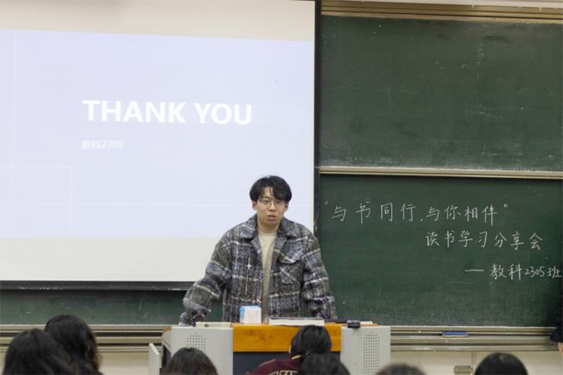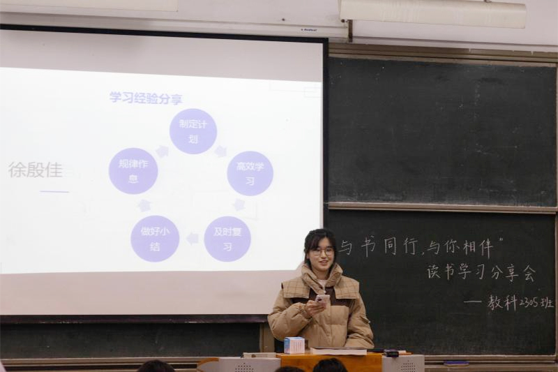 2024年3月25日,同学们在崇文楼1-109开展了“与书同行,与你相伴”的读书学习分享会。在此环节中,班上的一等奖学金获得者与大家分享了自己的学习经验。此后,乔语菡同学将自己感兴趣的书籍,与其他同学分享并交流自己阅读此书的感受,并在最后观看了相关视频。此次活动通过同学间经验与心得的交流与分享,旨在提高同学们勤奋学习的热情与阅读的兴趣。