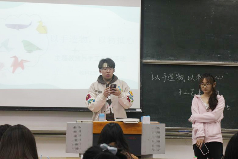 2024年4月10日,同学们在崇文楼1-109开展了以“以手造物,以物抵心”为主题的手工艺术活动。在此次活动上,同学们利用橡皮泥、扭扭棒、卡纸等材料创作作品,将创新创作精神融入学习生活中,帮助同学们成为一名合格教师。此次活动旨在调动同学们的动手积极性,培养同学们的手工技能,提高同学们的创新与实践能力,奉献青春的想象力与创造力。