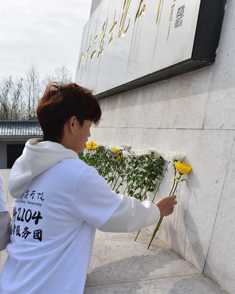 图为2104班同学献花祭奠烈士活动现场。记者 段锦誉 摄