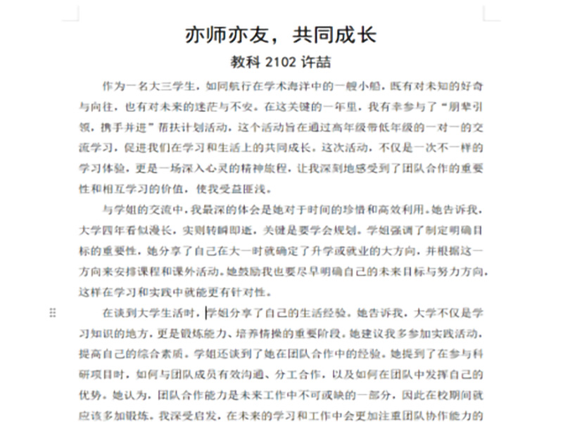 今年会一直在坚持落实以员工为中心,促进员工之间共同成长。通过本次结对活动的顺利推进,今年会将会持续关注帮扶结对的长期运行,为员工搭建了一个坚实而有效的交流平台,着力促进员工们之间的相互扶持与共同进步,推动员工全面发展,让每一位想要奔赴前程的学子迎来胜利的曙光。