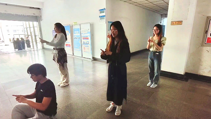 活动前,“槐青”志愿服务团队志愿者首先利用空闲时间自觉练习手势舞《我们都一样》,后集中于5月16日下午在教学楼进行排练,为活动做出精心准备。