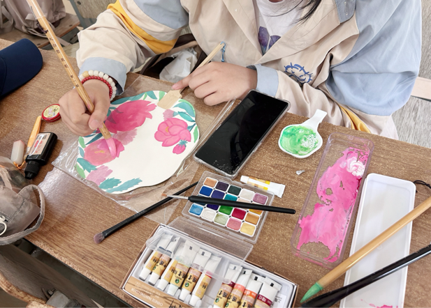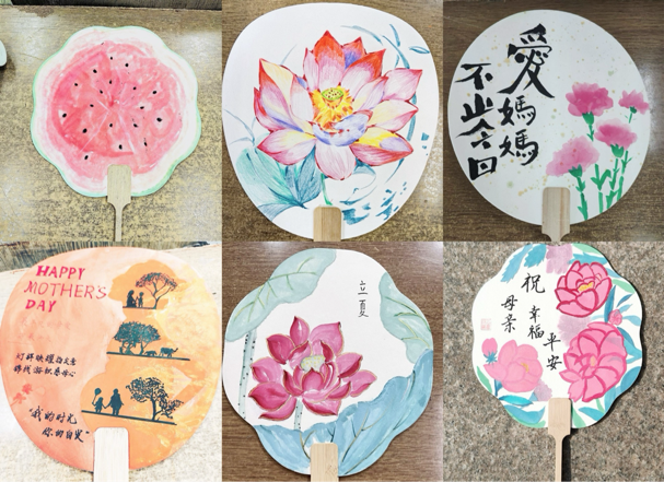 活动伊始,同学们纷纷准备好绘画工具,全身心投入到创作中。他们专心致志地勾勒线条,用心构思画面的每一处细节,心无旁骛地沉浸在绘画中。他们挥毫泼墨,以扇为纸,用心绘制出了一幅幅色彩斑斓、生动有趣的画面。扇面上的菡萏娇艳欲滴,荷叶翠绿欲滴,与同学们真挚的情感交相辉映,仿佛在诉说着立夏的故事,传递着母爱的温暖。