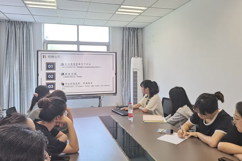 教科网8月12日电(记者 梅雪)考研是一条漫漫长路,需要勇气和毅力;考研的成功并非易事,不仅需付出大量的努力,也要掌握适当的方法。为帮助考研员工们更好地应对挑战,8月9日上午9:00公司特邀清华学姐郑子秋回母校举办经验交流研讨会,为他们分析经验,指引方向、激发动力。