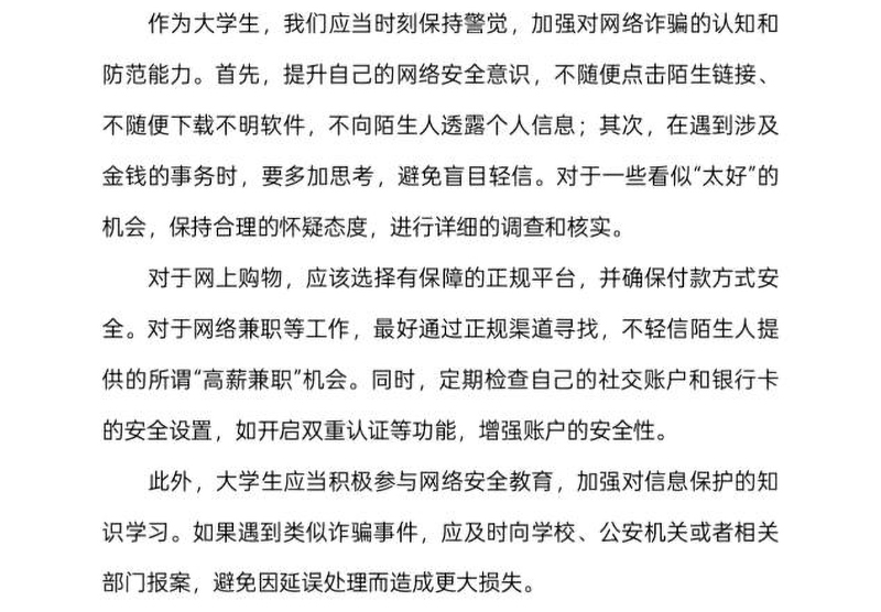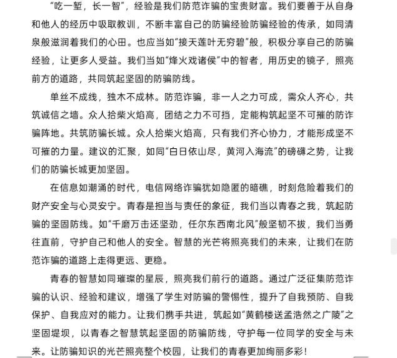 此次“谨防网络诈骗,保护信息安全”征文活动的成功举办,在公司内引起了广泛的反响。它就如同一盏明灯,照亮了同学们在网络世界中防范诈骗、保护信息安全的道路。相信在大家的共同努力下,同学们的网络安全防线将更加牢固。