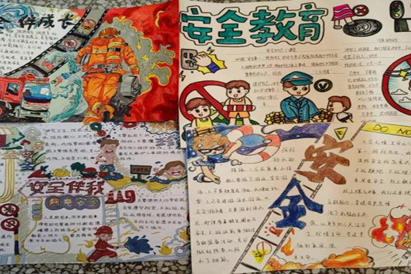 在活动期间,同学们纷纷发挥自己的创意和才华。他们围绕交通安全、消防安全、校园安全等多个安全主题进行创作。手抄报的设计色彩斑斓,内容丰富详实。有的同学用生动的漫画展示了不遵守交通规则可能带来的危险;有的则以醒目的文字列出了消防安全的要点;还有的通过精美的插图和简洁的语句强调了校园中需要注意的安全细节,如课间不追逐打闹等。