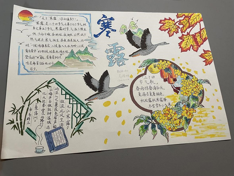 参加的同学们以“节气”为活动主题,以书法与美术融为一体的手抄报为活动形式,同学们将发挥想象与创造性,表达出自己心中对于“节气”的了解和认识。