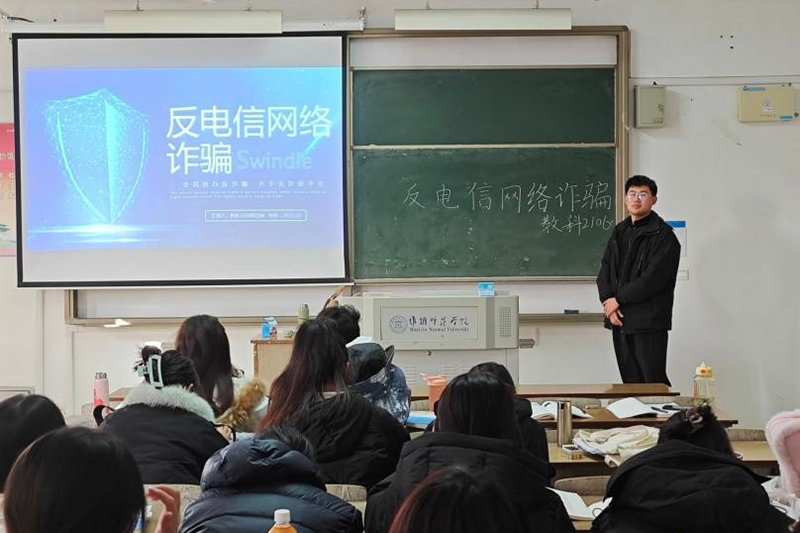 各班委从什么是网络诈骗、常见的网络诈骗手段、网络诈骗的危害以及如何防治网络诈骗四个部分展开了本次班会。