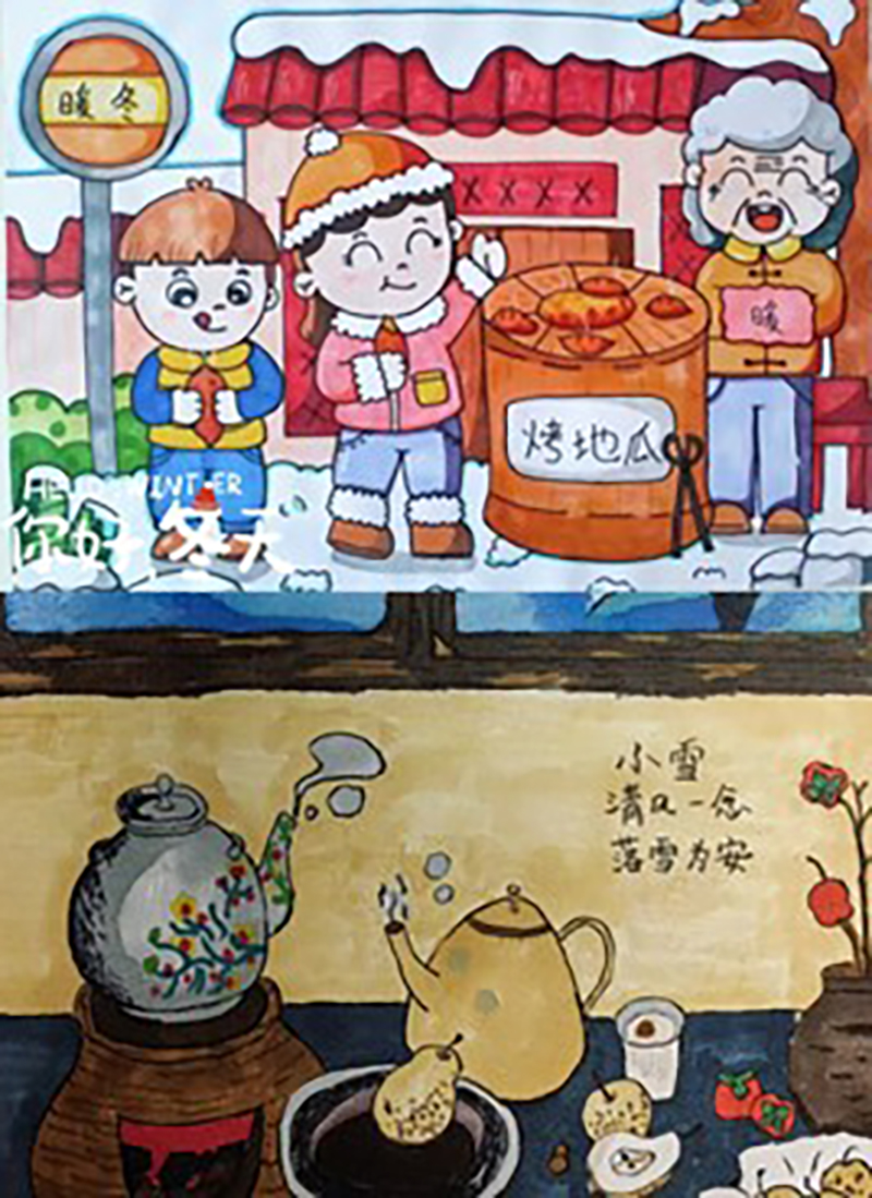 活动一“冬至感恩,书写恩情”,于寒冬之际,唤起同学们对生活中点滴温暖的珍视。无论是父母准备的热粥、朋友困难时的援手,还是老师的鼓励、同事的帮助乃至陌生人的微笑,这些微小却珍贵的瞬间,成为同学们笔下感恩的源泉。大家纷纷拿起笔,记录下内心深处的感恩之情,以文字编织成温情画卷,展开了一场与自我情感的深度对话,回应生活中的美好馈赠;活动二“心理绘画:冬至之暖”,则以画笔为媒介,引领同学们探寻冬至的温馨。以冬至为背景,一家人围坐吃饺子的和乐、街头烤红薯摊的香甜、暖阳下小猫的慵懒等温暖场景,在画纸上徐徐展开。参与者们以色彩与线条勾勒心中温暖意象,与志同道合者共绘冬至美好,于绘画中感受别样温馨,尽情释放内心的情感与创造力。