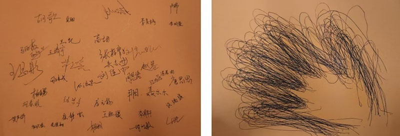 图为班级同学的签名及击掌记录。记者 刘佳雨 摄