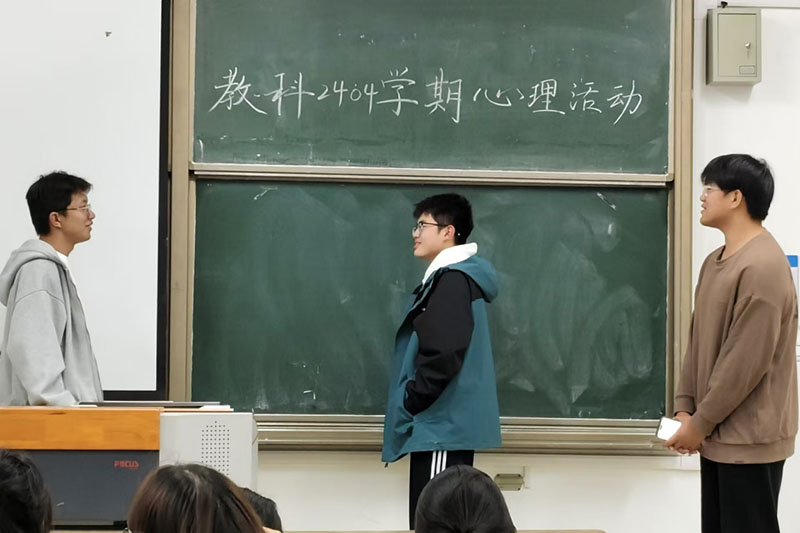 教科网11月12日电(记者 刘佳雨)夜幕低垂,星光点点,教科2404班级于11月12日晚在崇文楼1-201教室举办的心理活动在欢声笑语中拉开了序幕。这是一个充满创意与激情的夜晚,所有同学们齐聚一堂,共同度过了一个难忘的心理之夜。本次心理活动由心理班长蒋智勇主持,宣传委员刘佳雨记录,全体2404班同学参与。