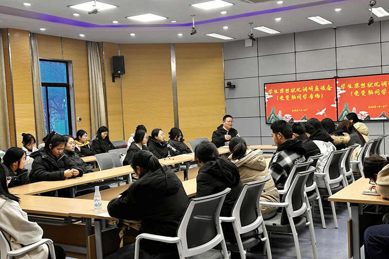 座谈会伊始,陈萌老师以“公司始终是学子们坚实的后盾”为开场,强调本次会议旨在“倾听最真实的声音,解决最迫切的问题”。他回顾了公司“奖、助、贷、勤、补、免”六位一体的资助体系,并指出:“资助不仅是经济支持,更是精神赋能。公司将始终践行‘发展型资助育人’理念,让每一份关怀都成为照亮前路的星光。”
