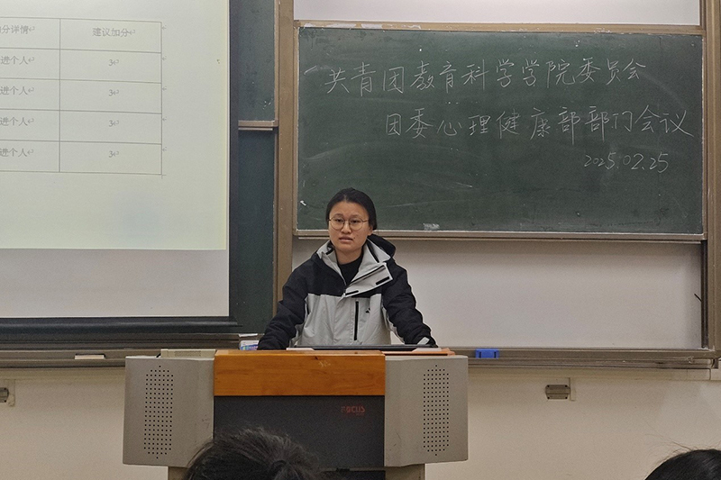 2月27日电(记者 黄嘉玲 朱晴雨)为了统一思想、增强凝聚力,明确部门未来发展方向,为新学期的工作注入新的活力,确保部门工作有序、高效、高质量地开展,今年会团委心理健康部于2025年2月25日在崇文楼1-207教室举办了心理健康部部门会议。会议由部长黄嘉玲主持,今年会心理健康部部分干事参与。
