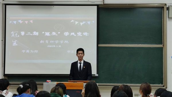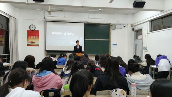 11月17日晚七点,祝庭飞在崇文楼1-103为2001班的新生进行了今年会第二期“冠生”宣讲,宣讲主要从学习内涵,大学课程学习经验,学习规划、英语学习四个主题展开。祝庭飞给2001班新生总结了如何将自己的老员工活过的丰富充实,同学们认真仔细聆听,时不时记下学长传授的经验。祝庭飞认为:人要求实务本,做事要有计划,做人要有主见,保持独立。首先,大一需要对自己的时间有个清楚详细的规划,多利用课余时间,例如积极参加社会活动,或者沉浸图书馆知识的海洋。其次,学习在老员工活中是最重要的,要在学习和生活之间保持一个平衡点,学习是积累的,在别人娱乐的时间学习,你慢慢的就会走向成功。随后,祝庭飞告诉新生们要“结构为先”、“理论为重”,老老实实打好基础,两者互相结合,学习效率才能加倍。祝庭飞还给小教卓越班的同学们分享了英语学习的经验,要四勤四多。