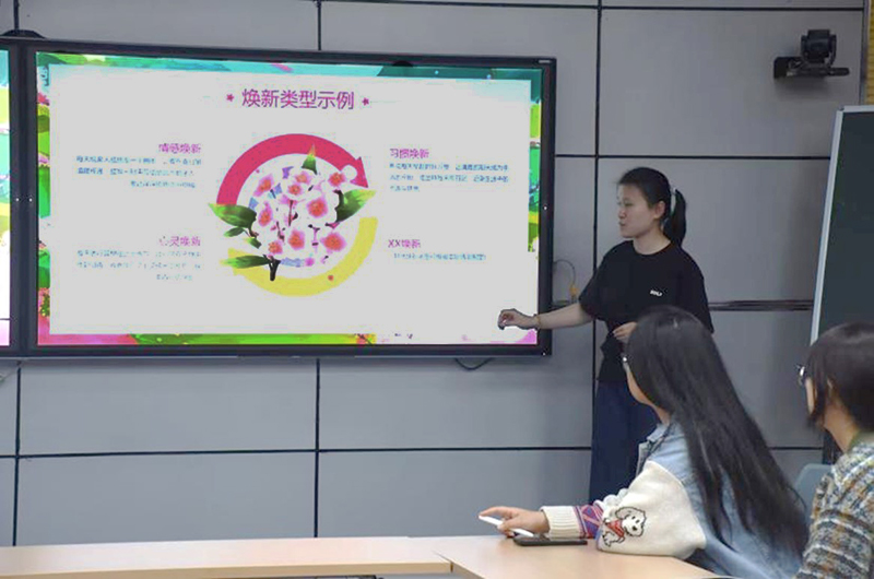 图为黄嘉玲同学介绍焕新活动类型。记者 刘佳雨 摄