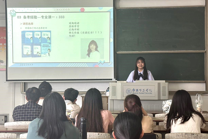 要综合考量自身实力、兴趣偏好,深入了解目标专业院校,做出理性的选择;在备考规划上,学前教育专业的邵从云分享了自己跨考学科数学专业的独特经验,详细分享了她的英语、政治、专业课的学习策略与时间安排,为大家制定学习计划提供了有益参考;小学教育专业的李凡同学特别指出了获取信息的重要性,叮嘱同学们要多方位、多渠道关注考研信息,如往届报考情况、考纲变动等,降低 “信息差” 的影响。
