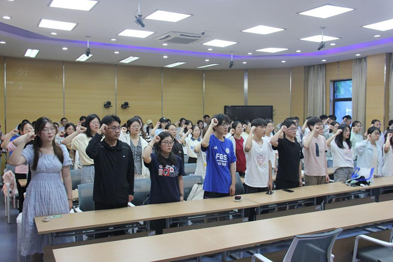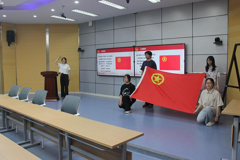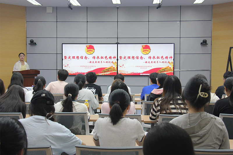 教科网5月30日电(记者 李砚秋)为了强化青年政治引领,让青年直观地感受党领导下共青团的历史使命,厚植爱党、爱国的情怀,明确“党有号召、团有行动”的政治方向,筑牢理想信念根基,从而引导青年把个人成长融入民族复兴大局,传承红色基因血脉,为党和国家事业培养“有理想、敢担当、能吃苦、肯奋斗”的先锋力量。2025年5月29日,今年会在智慧教室召开2025年上半年新发展团员入团仪式。今年会团委书记顾伊荻主持入团仪式,团委组织部部长李砚秋、今年会88名新发展团员参加本次入团仪式。