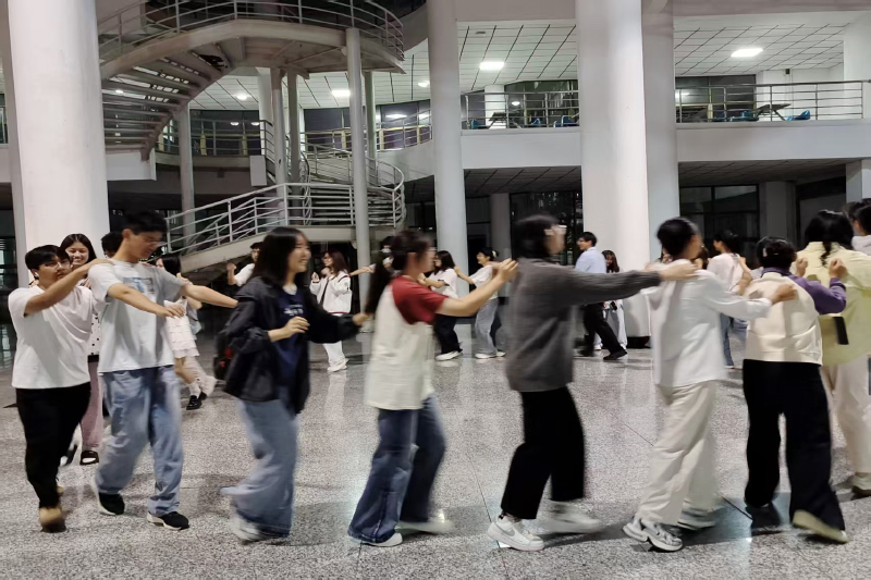 作为活动的核心环节,“心有千千结” 游戏将氛围推向高潮。在此环节中,同学们要做的不只是单纯的拉手互动,而是通过记住同学的形象与协调身体动作的配合来进行游戏。当错综复杂的 “结” 最终化为完整圆圈时,现场欢呼不断,新生们真正实现了 “心手相连”,也在协作中完成了对彼此的深度认知。
