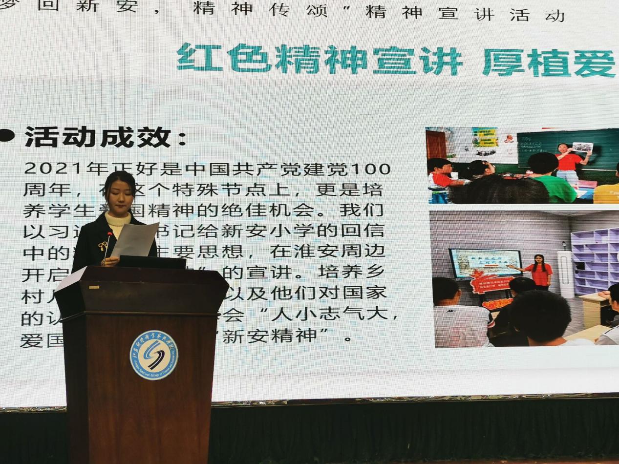 2005班的陶含之同学对“爱心起航,文教并行”——助力乡村振兴项目进行了汇报,该项目在滕祥和顾伊荻老师的带领下开展了为期14天的实践活动。在项目前期“槐青”志愿服务团队实地走访了淮安市新安小学,学习并发扬“新旅精神”,返回家乡以后,“槐青”志愿服务团队再次出发,实施了“爱心起航,文教并行”助力乡村振兴项目。