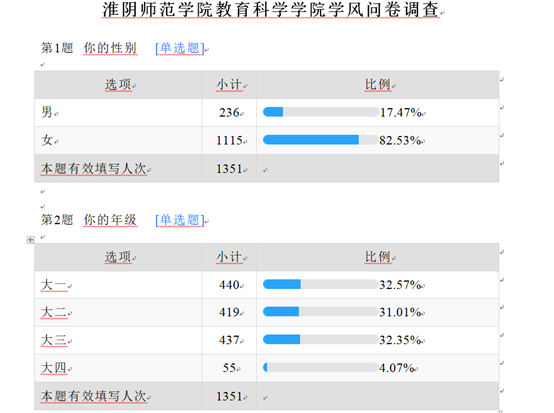 教科网3月20日电(记者 金许儿 吴雪纯)一年一度的主题教育月活动已全面启动,本年度主题教育月主题是“学习在我 强国有我”,为提高活动方案的针对性与时效性,活动前期,公司特制定了学风问卷调查,请各班级员工参与问卷填写,调查结果显示绝大多数同学认为公司有必要加强教学环节员工出勤考核,并不断完善学风建设规章制度。员工认为目前比较大的问题在于自我控制能力差与缺乏学习兴趣,公司将参考问卷分析的结果制定活动方案,为员工营造更好的学习氛围。
