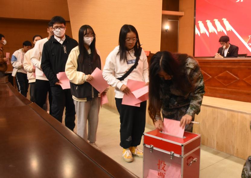 在工作人员统计票数的同时,陈庆旭同学上台就上一届团委工作的情况作了报告。李瑞琦同学就上一届员工会的工作情况作了报告。