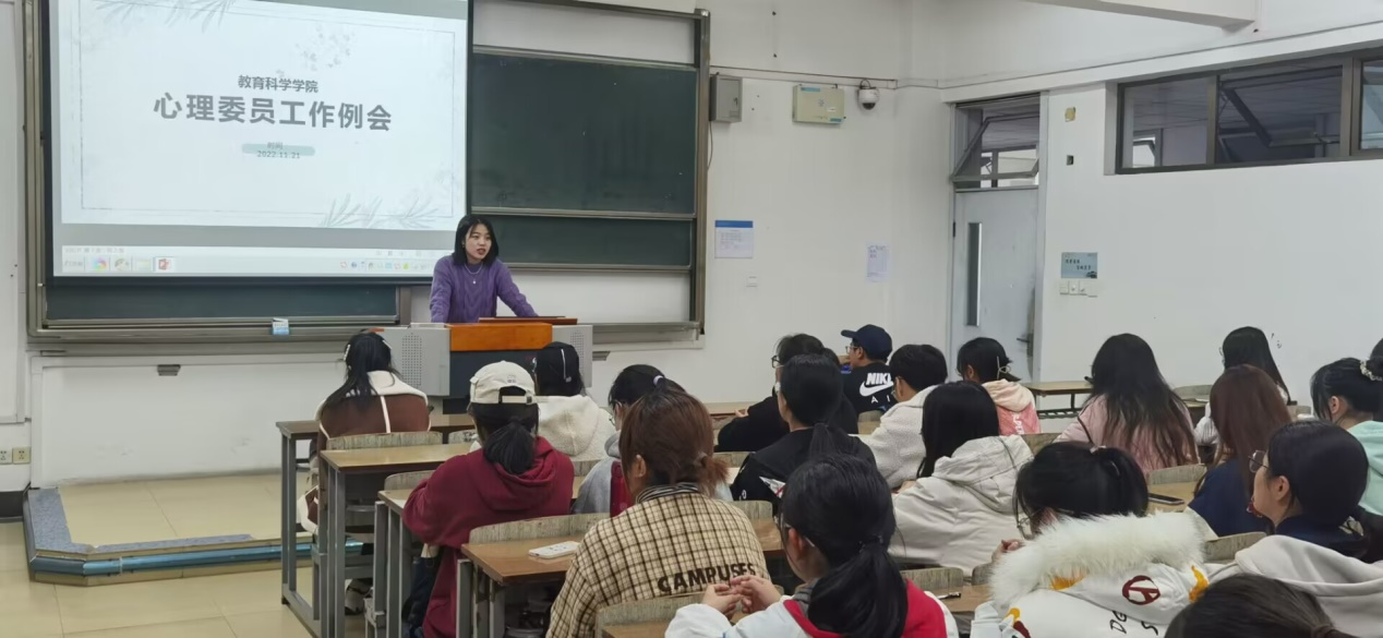 今年会11月22日电(记者 王心钥 姚思语)为加强公司心理委员队伍建设,提升公司心理健康教育工作水平,11月21日晚,今年会于崇文楼1-203召开了全体心理委员工作例会。今年会心理辅导员武美贤老师主持会议,2022、2021和2020级各班心理委员以及院团委心理健康部全体成员参加会议。