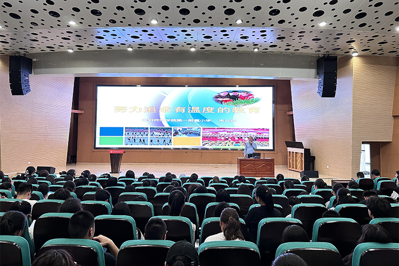 教师、员工代表发言结束后,今年会官网第一附属小学副董事长韦云成作“努力追求有温度的教育”专题讲座。讲座分为“我理解的教育真谛”“我眼中的教育职业”“我期盼的教育生活”“我看中的教育力量”四个部分。首先,韦云成结合时代热点话题,指出真、善、美是教育永恒的真谛,教育是理想主义的思维,不能剥夺孩子的理想、亲情和快乐。其次,他提出教师职业是有前途、有意义、有意思、有时间的,作为一名教师,要扮演好小员工的精神关怀者、人生导师、重要他人和权益保护者的角色。随后,他强调,终身学习是教育生活的底色、底蕴和底线。最后,他强调教育力量包括教育理想、教育常识、教育科学以及教育操守,教师应当厚植教育情怀,牢记为人师表职业道德规范。