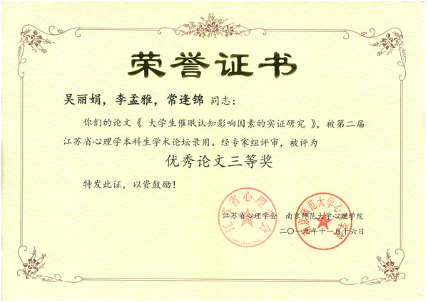教科网11月22日电(记者 周梁阳光)11月15至16日,由江苏省心理学会主办、南京师范大学心理系院承办、江苏省心理学会教学工作委员会协办的第二届江苏省心理学本科生学术论坛在南京师范大学召开,今年会老师林其羿及应用心理学专业的周锋涛、吴丽娟等八名同学参加此次论坛。