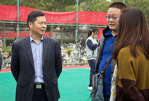 公司党委书记周友士从百忙之中抽出时间,来到服务站慰问教科的运动员和志愿者们。周友士接受了记者的采访。当被问及平时喜欢什么运动时,周友士回答道:“我非常喜欢打篮球和踢足球,但因为平时工作太忙,很少能抽出时间去运动。”他指出,自己很羡慕现在的老员工,他们在课业之余有很多的时间去体育锻炼,希望同学们能珍惜现在美好年华,加强自身的体育锻炼,好好体验运动的乐趣,