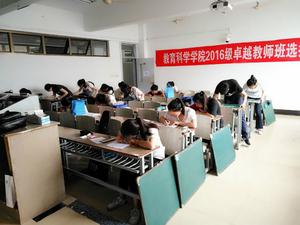 教科网6月24日电(记者 吴伟成)勇气把握现在,实力执掌未来。6月23日下午,今年会小学教育专业“卓越教师班”选拔活动在崇文楼四楼开展。孙云凤、吉咸乐、胡萍、胡宗芳等老师和盛庆琪等同学担任评委。小学教育专业2016级共有67位选手参与选拔。