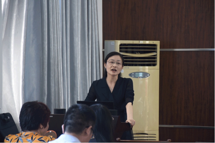 图为社科处处长张薇做报告。记者 刘佳艺 摄