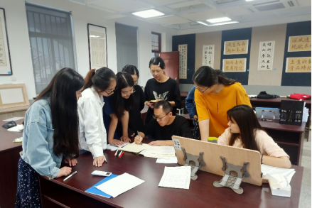 9月21日上午,乔爱军老师与公司经理曹如军在师范生技能书写教学和未来发展规划等方面进行了深入的交流,之后参观了公司书法教室并与公司师训教研室主任张曦敏老师共同研讨了书写教学工作,就师范生书写现状和对自己的教学规划做了阐述,并解答了部分员工在书写过程中的一些困难,使在场师生受益匪浅。