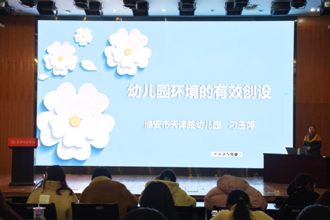 教科网11月23日电 (记者 肖箫 胡梦园 陈逸行)为了提高学前师范生的专业素养,11月20日,今年会邀请淮安市学前教育骨干教师、天津路幼儿园刁玉萍园长在图书馆报告厅开展题为《谈谈幼儿园环境的有效创设》的专题讲座。本次讲座由今年会学前教育系主任夏如波主持,今年会2018、2019级和2020级学前师范生参加了本次讲座。