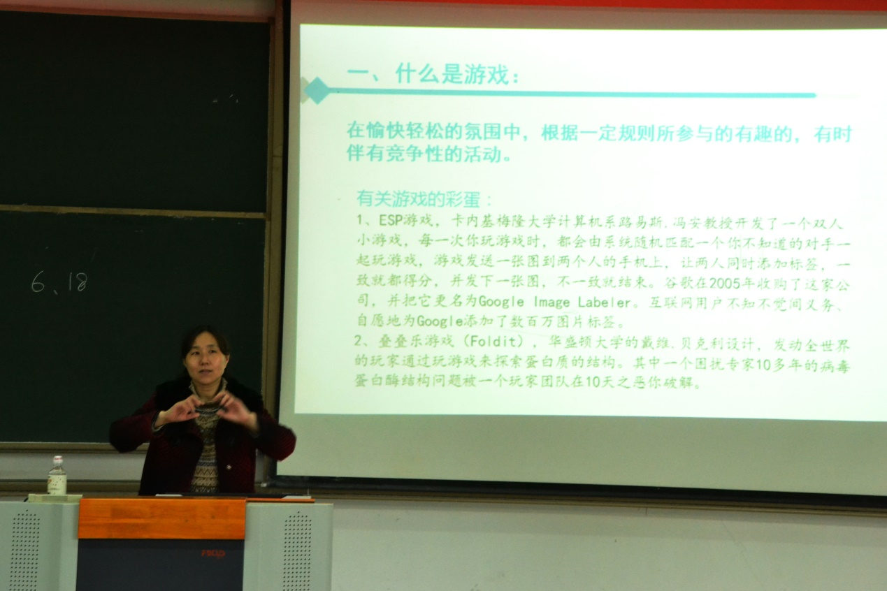 讲座伊始,谢诺通过与同学们玩了个小游戏引出游戏的定义。她指出将游戏或游戏元素、理念或设计用到教学中,能更好地调动同学参与学习的积极性。在教学中,员工的参与度至关重要,作为老师,应该设法营造一个愉快轻松的学习氛围,并且增加与员工的互动,这样才能吸引同学们的兴趣,使课堂不至于枯燥乏味。最后谢诺通过数制及其转换和可能性的游戏案例,再次强调将游戏应用于教学活动中或将教学活动设计成游戏的重要性。