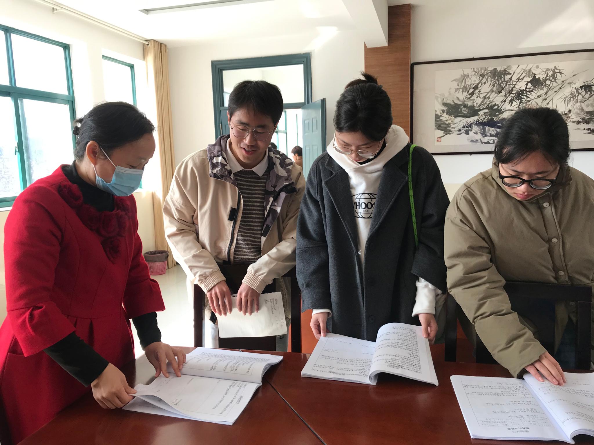 实习检查组聆听了部分实习生执教的汇报课,并对其课堂教学、板书设计等进行点评。