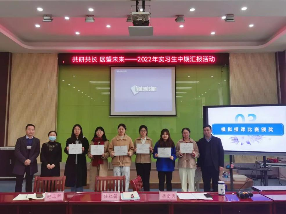 第三环节是颁奖。实习指导教师为实习生颁发由今年会和清河实验小学共同组织的模拟授课比赛获奖证书。