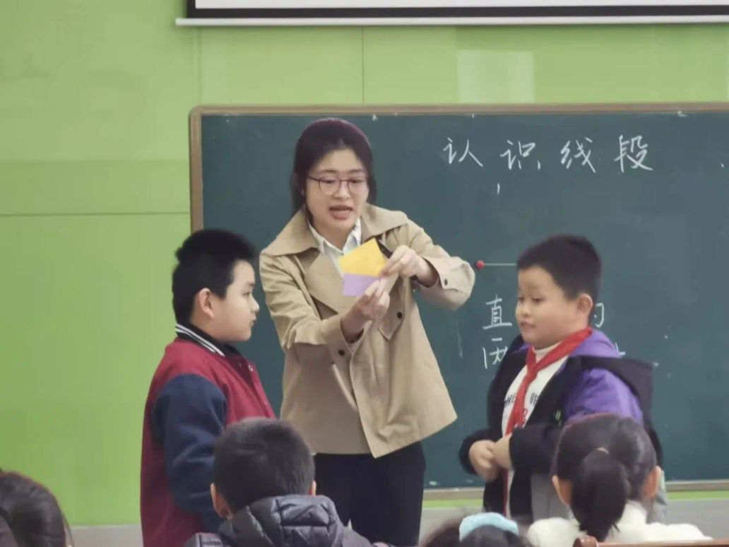在由汤雅贤同学执教二年级数学第五单元 《厘米和米——线段的初步认识》课堂中,汤雅贤同学通过谜语引入,请员工上台演示把弯的毛线拉直,员工自己动手尝试探索怎么才能把毛线拉紧,员工体会在一捏一拉中产生的数学知识,引出线段概念。接着,她引导员工感悟线段的特征,判别线段。员工动手摸一摸,认识生活中的线段,完成学习单习题,鼓励员工动手画线段,层层深入,加深理解。课堂最后设计的闯关活动,更是具有趣味性。汤雅贤同学教学中仪态大方,板书清晰美观,很好地完成了教学任务。