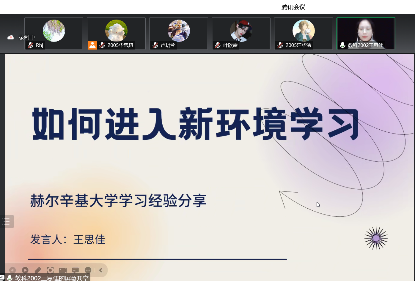最后,王思佳分享了进入新环境学习的心得。她提出了三点建议:第一,加入环境;第二,努力适应陌生的环境;第三,主动去问、主动求学。