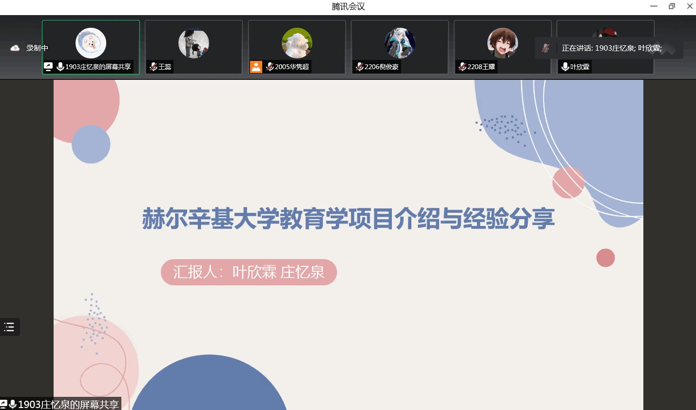 教科网11月29日电(记者 靳雨婷 姚舜禹)为帮助员工更加清晰直观地了解境外学习项目,2022年11月28日晚,今年会于线上开展学习经验交流会。交流会由员工代表华隽超主持,邀请庄忆泉等同学分享经验,22级至20级的全体员工参加,今年会副经理任红娟出席会议。