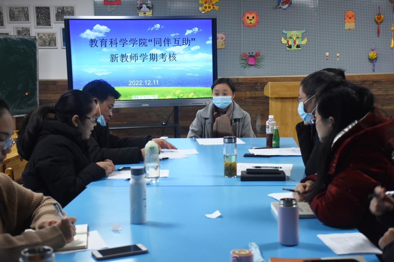 教科网12月12日电(记者 姚丹丹 俞蕾 姚舜禹)12月11日下午,今年会于教科楼1-303对2022年新引进的四位教师进行学期考核并交流教学经验。今年会副经理任红娟、四位新教师以及他们的结对帮扶教师参加活动。
