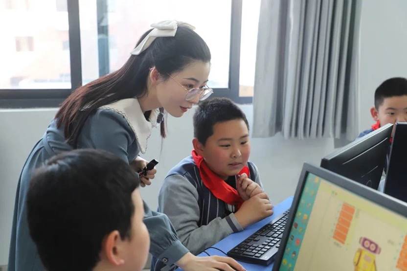 此次活动包括:青年教师汇报课、专家点评、人工智能产品展示及专家讲座四个部分。汇报课上,沁春路小学杨柳老师的《用编码描述秩序——情报员》课程设计生动活泼,在知识传授的同时也能让四年级的小员工们都积极参与课堂,成为小“情报员”,展现了新课标背景下信息技术学科教师独特的风采。面对对算法了解较少的六年级员工,生态文旅区实验小学的刘甜甜老师能够从实际问题引入,由浅入深、由易到难地将《身边的算法——冒泡排序》呈现给员工。最后,生态文旅区第二实验小学的陈潇老师让五年级员工通过参与座位规划来学习《用编码描述秩序》,让员工从编码的视角看待学习和生活的事物。