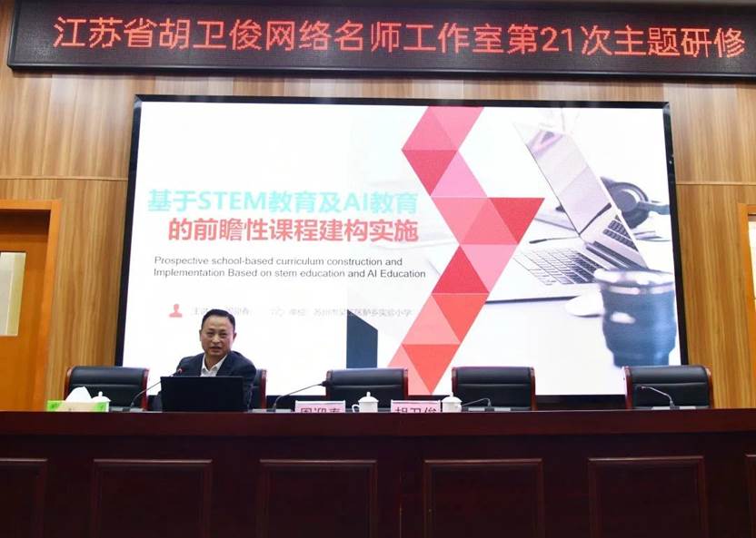 下午,江苏省特级教师,苏州市吴江区鲈乡实验小学副董事长周迎春以“基于ATEM教育及AI教育的前瞻性课程建构实施”为题作了讲座。讲座结合实例深入讲解了:STEM教育变革的意义及课程开发的背景,中小员工3D建模打印教程,面向STEM的scratch创新课程以及面向STEM的mBlock智能机器人创新课程等。周董事长强调,教师在教学过程中一定要注重课堂的真实性和员工高阶思维的培养。此外,周董事长还关心教师的专业发展和老员工们未来的职业规划,从课例研究、论文撰写、课题研究等方面做了细致的指导。