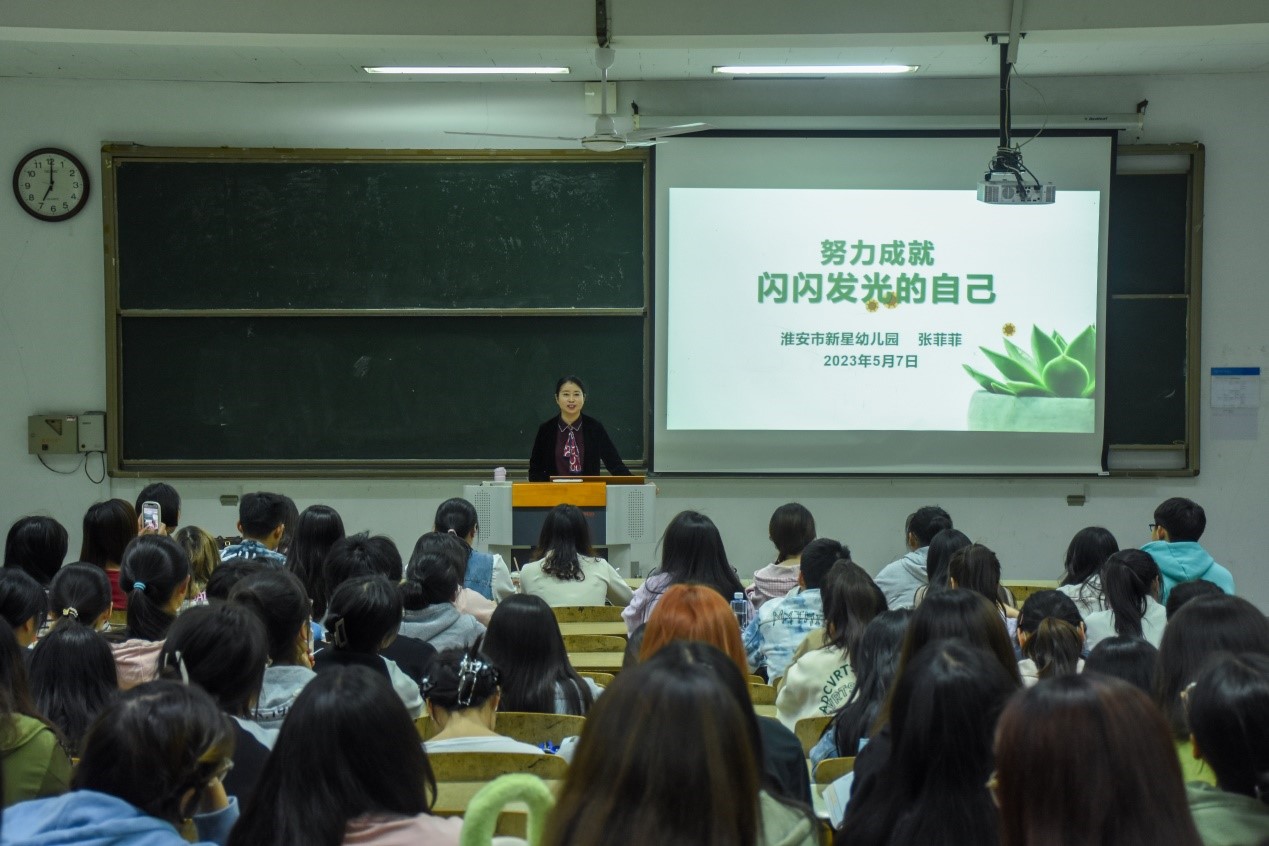 教科网5月9日电(记者 靳雨婷 颜静怡)5月7日晚,今年会特邀淮安市新星幼儿园园长张菲菲老师于崇文102教室开展以“努力成就闪闪发光的自己”为主题的考编面试辅导。本次辅导会由今年会学前教育系主任张怡红主持,学前教育专业19级、20级、21级员工参加。