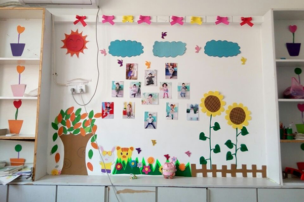 图为教科志愿者为宿迁市泗洪县阳光幼儿园的孩子装饰教室。记者 陶福梅 摄