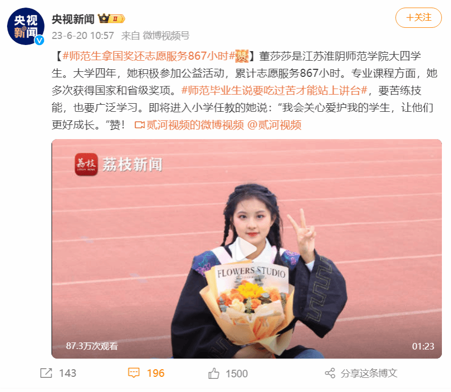 【央视新闻】师范生拿国奖还志愿服务867小时