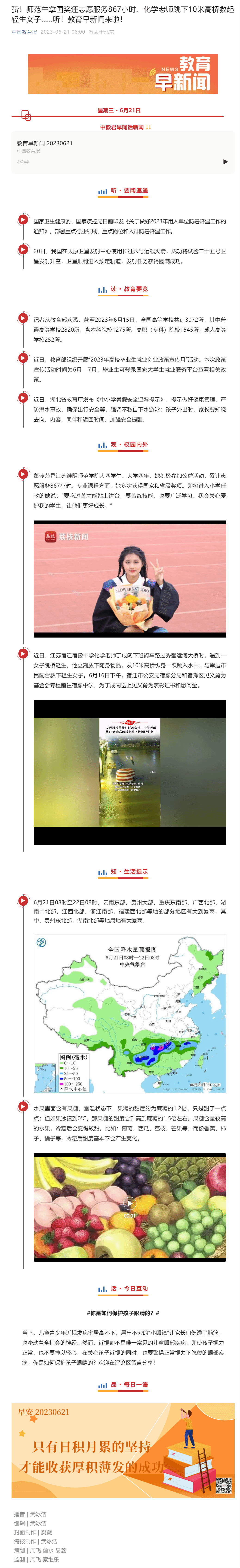 刊播媒体:中国教育报 刊播时间:6月21日 通讯员:武冰洁