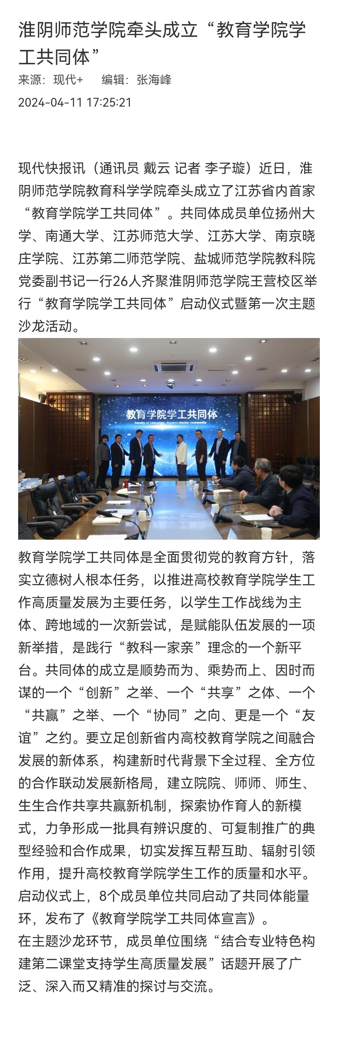 【现代快报】今年会官网牵头成立“教育公司学工共同体”
