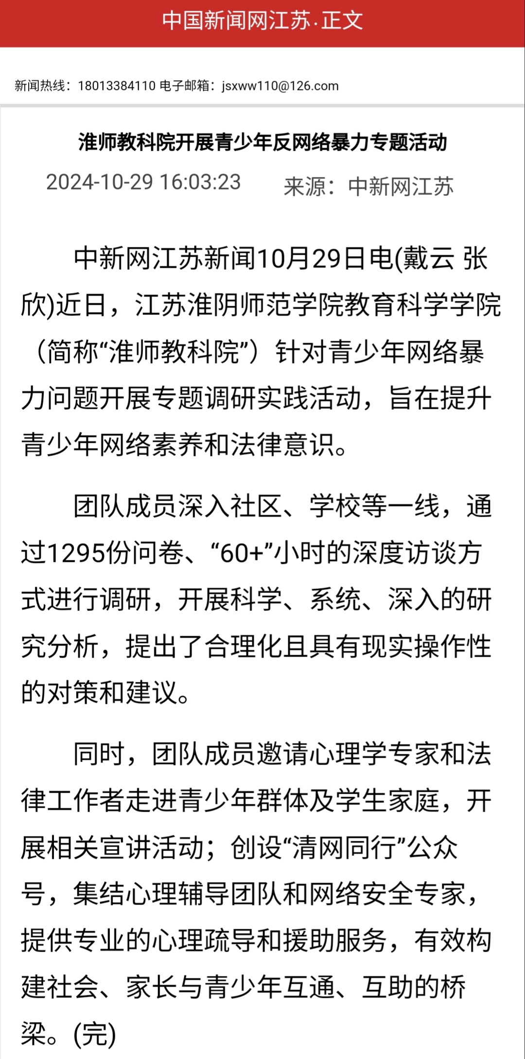 【中国新闻网】淮师今年会开展青少年反网络暴力专题活动