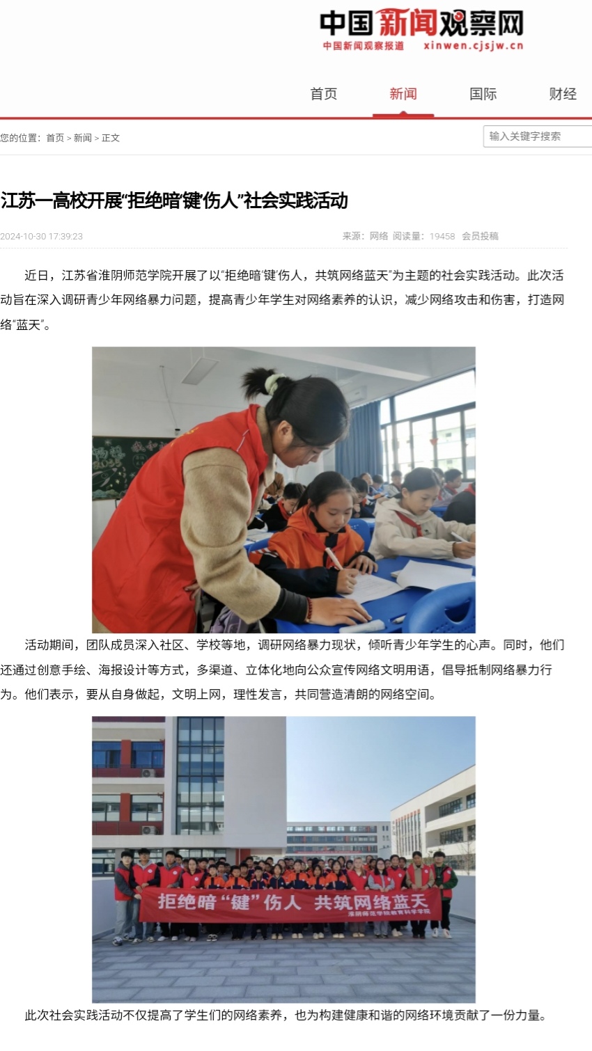 【中国新闻观察网】江苏一高校开展“拒绝暗‘键’伤人”社会实践活动