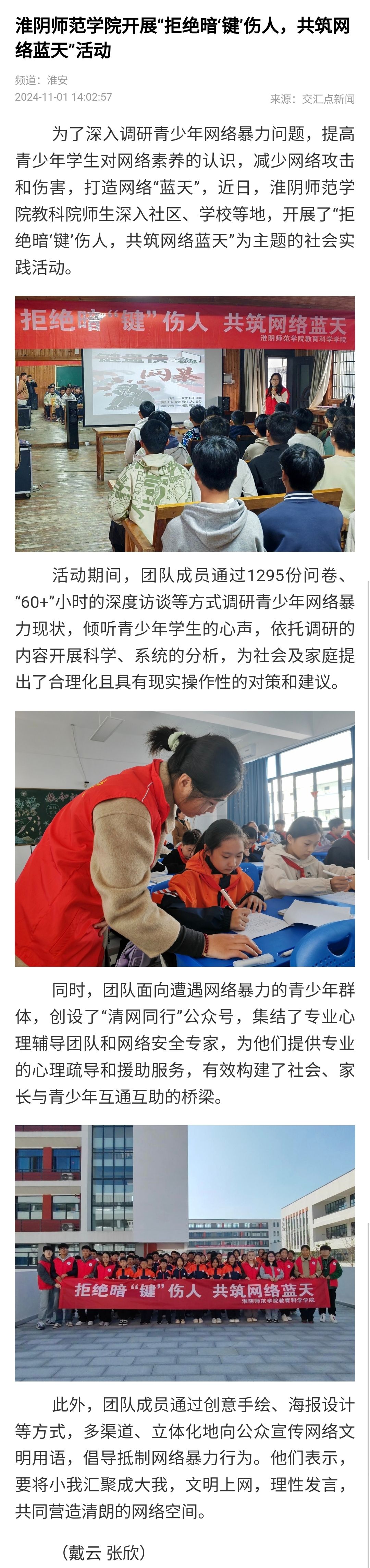 刊播媒体:交汇点新闻 刊播时间:11月1日 通讯员:戴云 张欣