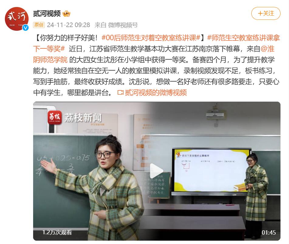 【荔枝新闻】你努力的样子好美!师范生空教室练讲课拿下一等奖
